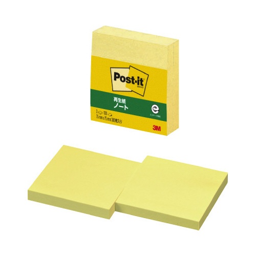 ポストイット 再生紙ノート75×75 イエロー2冊