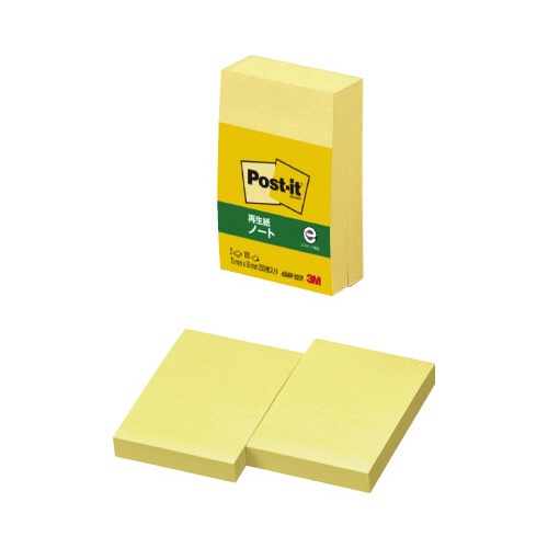 ポストイット 再生紙ノート75×50 イエロー2冊