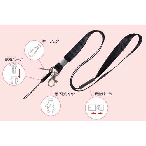 多機能パーツ付吊下げひも 黒5本