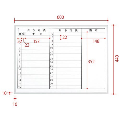 ホワイトボード 月予定 A2サイズ