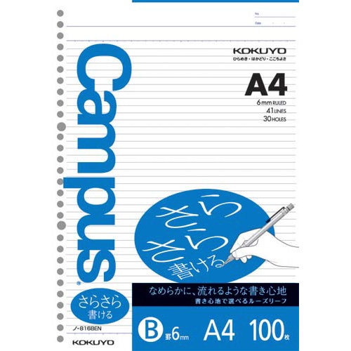 キャンパスルーズリーフA4 30穴B罫100枚×5