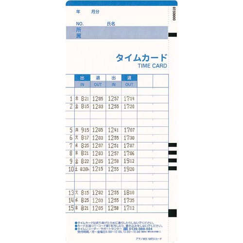 ※対応のタイムカードをご確認下さい。