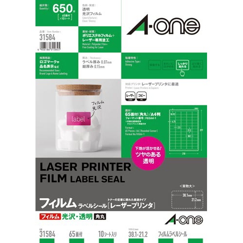 2. フィルムラベル 透明光沢 LBP 65面 10枚