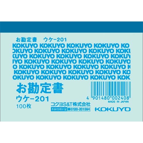 簡易領収証B8ヨコ 100枚 ウケ−201 20冊