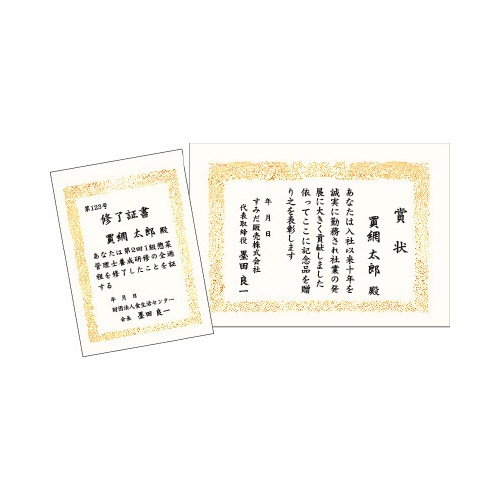 OA対応 金箔賞状用紙B4縦型ヨコ書 5枚入