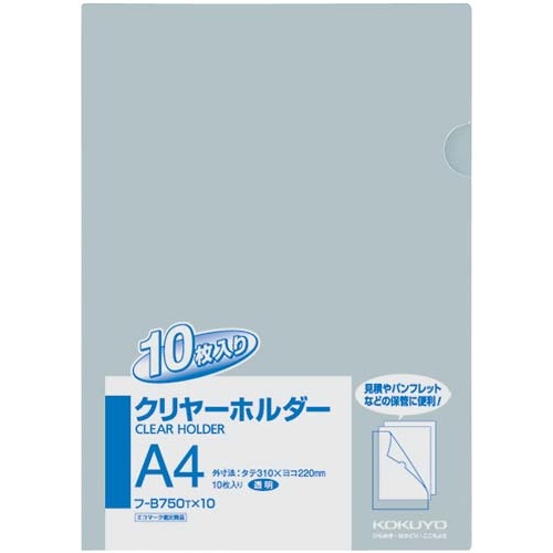 注意事項 | ※1セット単位でお申し込みください。 ※ご使用に際しては、中に入れる印刷物等のインクに反応して商品が変形する場合があります。インクが乾いた後にファイリングしてください。クリヤーホルダーのシート厚の表記は平均値です。製造過程で若干のばらつきが発生します。製造ロットにより、色味が変わる場合があります。 以下の点にご注意ください