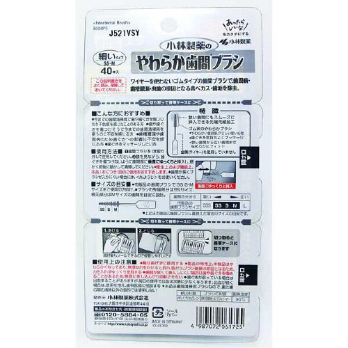 注意事項 | ※【返品に関するご注意】開封後はお客様のご都合による返品はお受けできません。 ※歯ぐきが弱っている場合、出血することがありますが、毎日の使用で出血は次第に少なくなります。 ※出血が続く場合は、使用を控え、歯科医に相談する。 ※本品は歯間清掃用ブラシなので、歯と歯の間の清掃以外の目的では使用しない。 以下の点にご注意ください