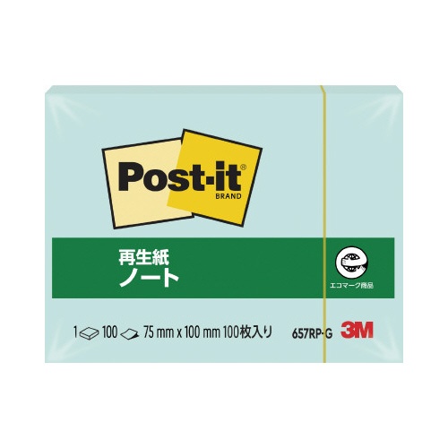 ポストイット 再生紙ノート75×100グリーン1冊