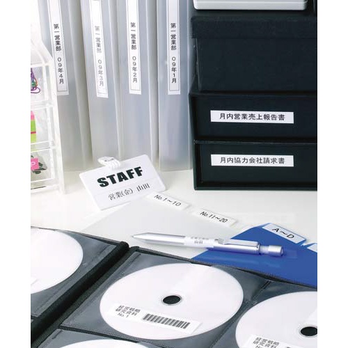 2. ピータッチ ラミネート白色テープ12mm黒文字5個
