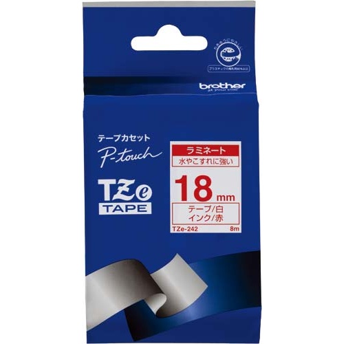 ピータッチTZeテープ 白 赤文字 18mm幅