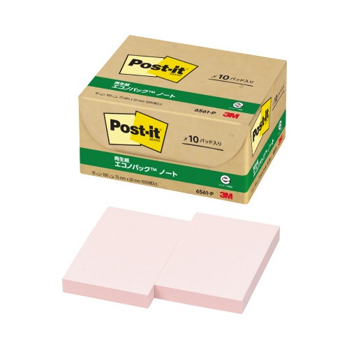 ポストイット 再生紙ノート75×50 ピンク10冊