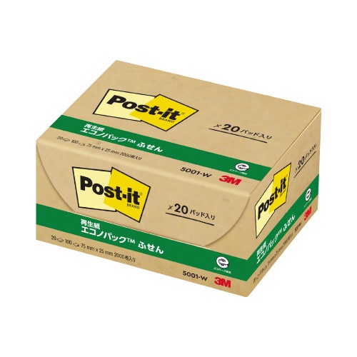 ポストイット 再生紙ふせん 75×25 赤帯20冊