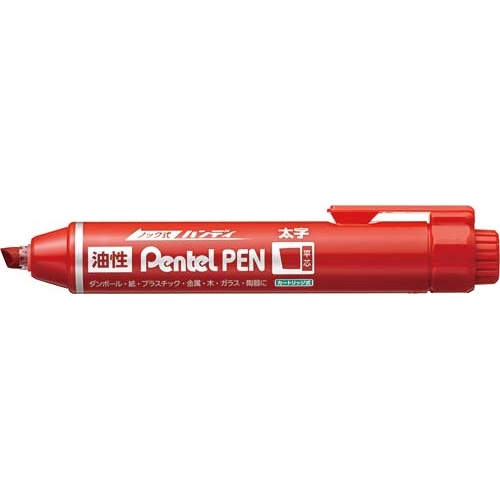 ノック式油性マーカーハンディ 平芯・太字 赤10本