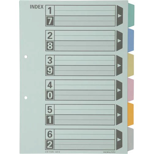 カラー仕切カード A4縦 2穴 6山 10組×3