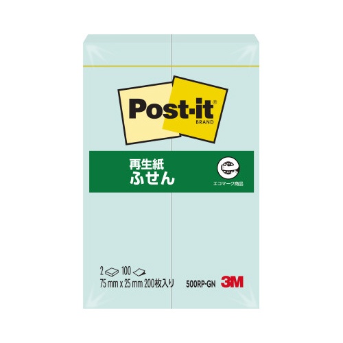 ポストイット再生紙ふせん75×25 グリーン 2冊