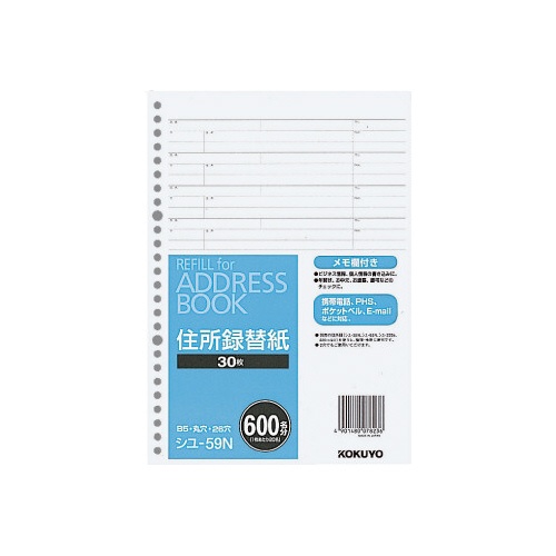 アドレスブック替紙B5縦26穴600名収容