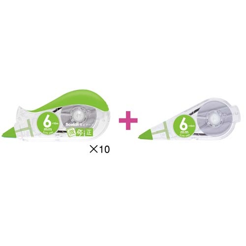 修正テープ 微修正 6mm幅 本体10個+詰替1個