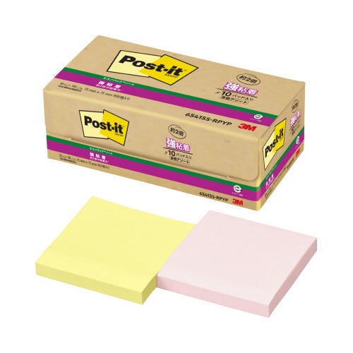 ポストイット強粘着75×75 パステル黄・桃10冊