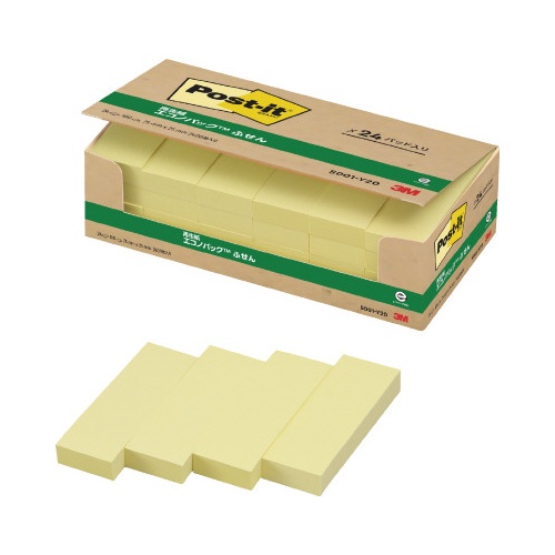 ポストイット 再生紙ふせん 75×25 黄24冊