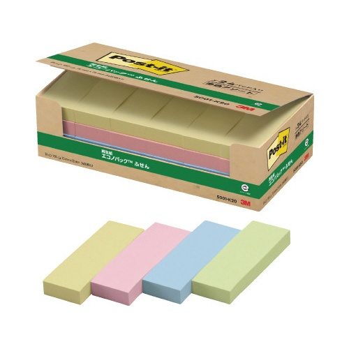 ポストイット 再生紙ふせん 75×25 混色24冊