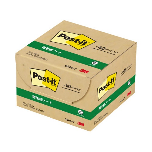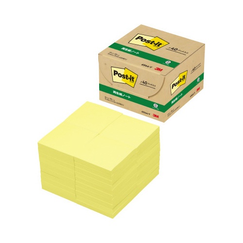 ポストイット 再生紙ノート 75×75 黄 40冊