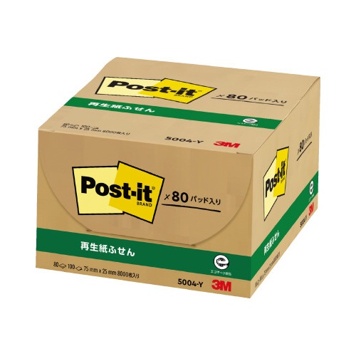 ポストイット 再生紙ふせん 75×25 黄80冊