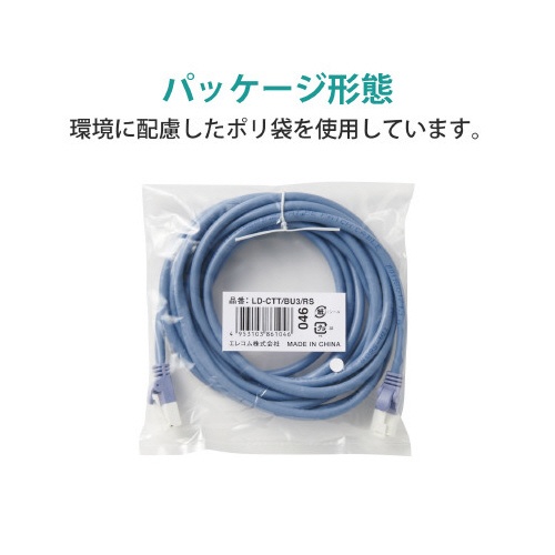 LANケーブル カテ5E ブルー 3m