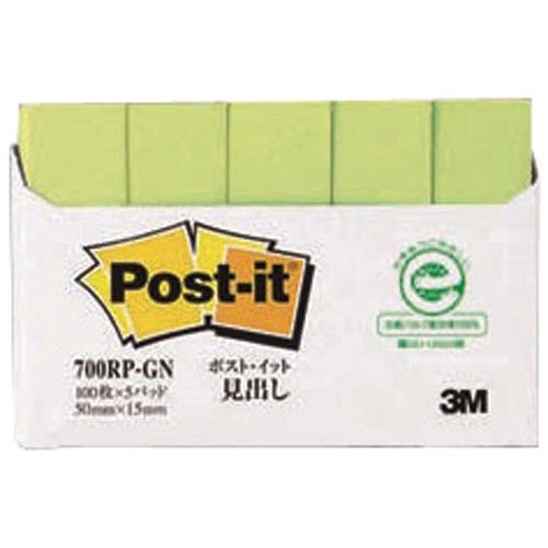 ポストイット再生紙見出し50×15 グリーン 5冊