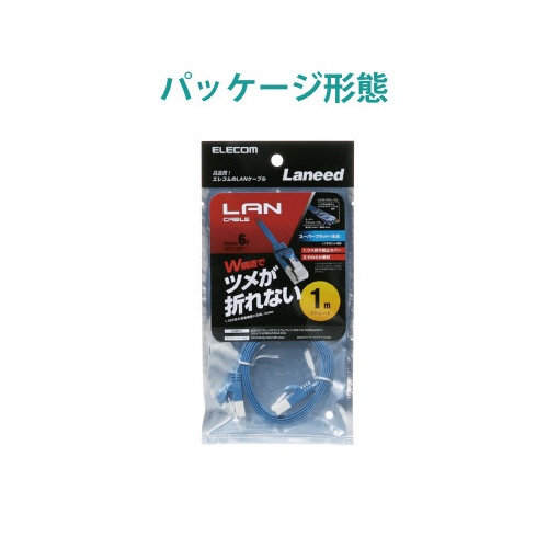 ツメ折れ防止フラットLANケーブル カテ6青 1m