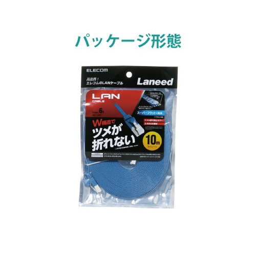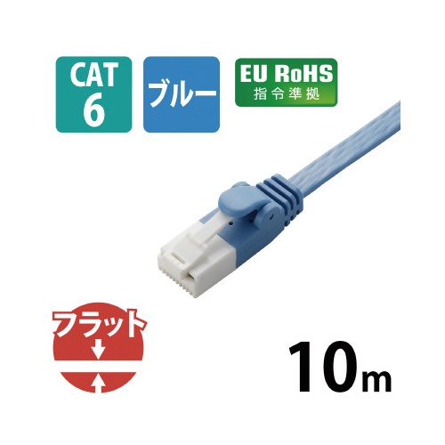 ツメ折れ防止フラットLANケーブル カテ6青10m