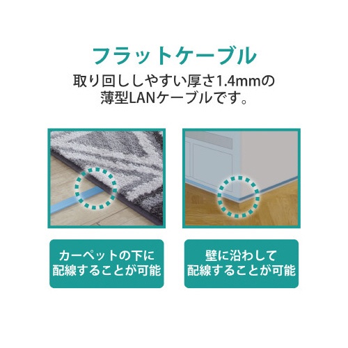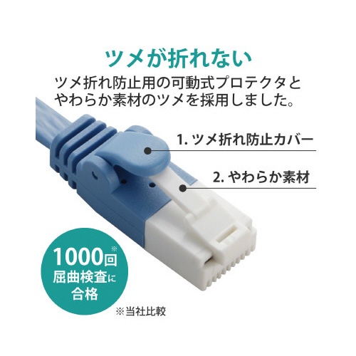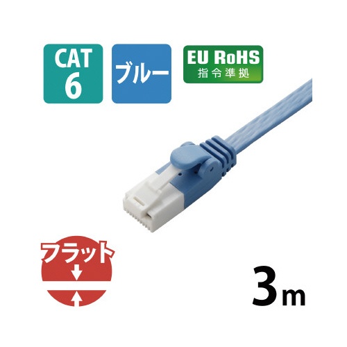ツメ折れ防止フラットLANケーブル カテ6青 3m