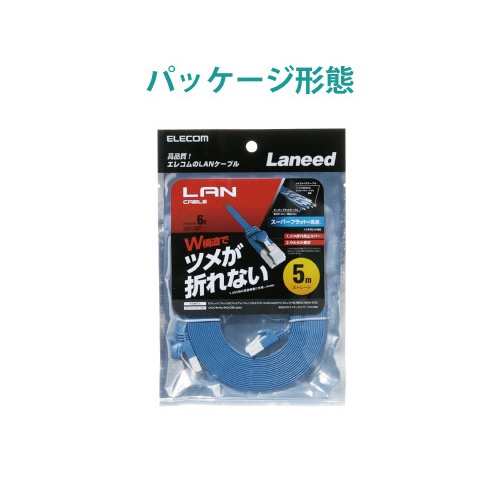 ツメ折れ防止フラットLANケーブル カテ6青 5m