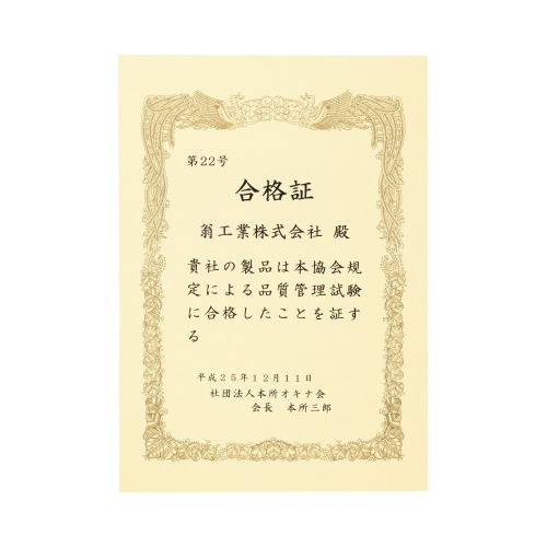 OA対応賞状用紙クリームA4縦型ヨコ書10枚×5