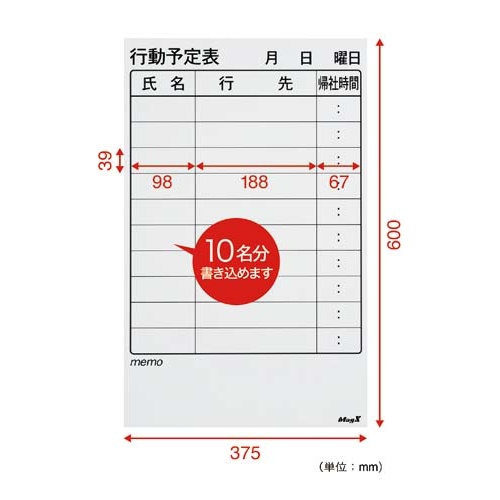 マグネットボードシート行動予定表600×375mm