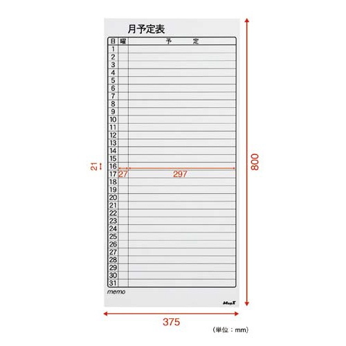 マグネットボードシート月間予定L800×375mm