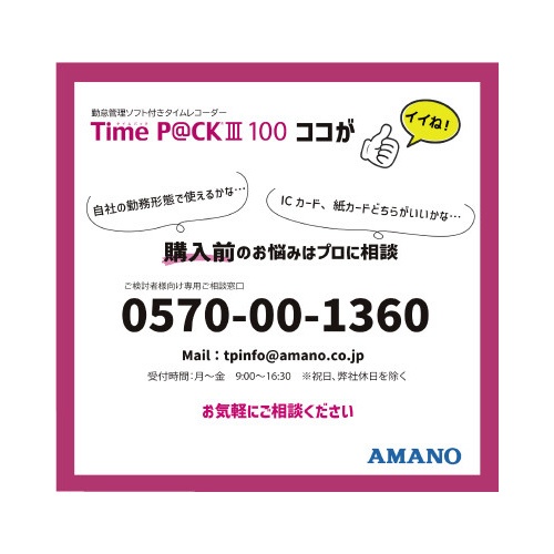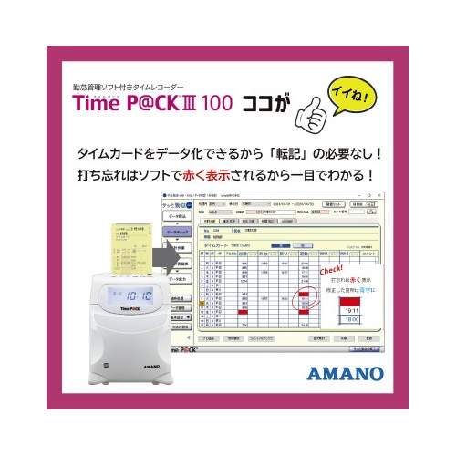 注意事項 | ※対応給与ソフト/弥生(弥生給与)、OBC(給与奉行)、PCA(PCA給与)、応研(給与大臣)、給料王他 詳しくはメーカーHP(http://timepack.amano.co.jp/products/relation.html)をご覧下さい。 ※タイムパック専用ダイヤル(アマノ):0570−00−1360。 ※MacOSには対応しておりません。 ※【返品に関するご注意】開封後はお客様のご都合による返品はお受けできません。 以下の点にご注意ください