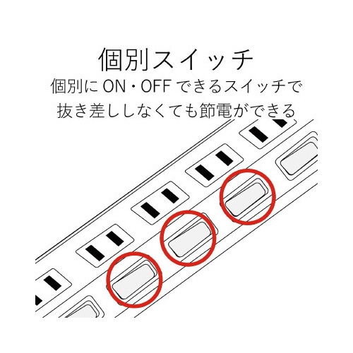 2. OAタップ 2P 6個口2.5m 雷 個別スイッチ