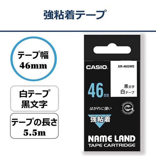 ネームランド 強粘着白色テープ 46mm 黒文字
