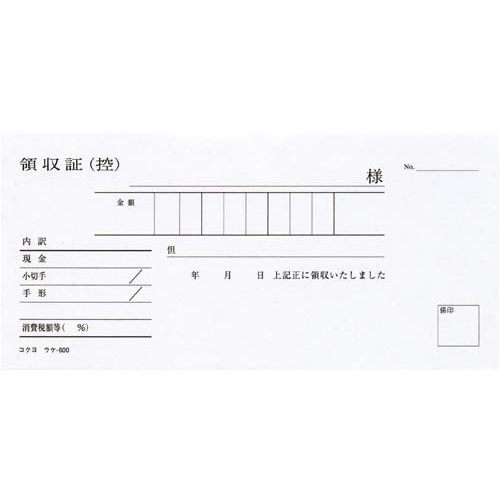 複写領収書 紙幣判ヨコ型50組 ノーカーボン×10