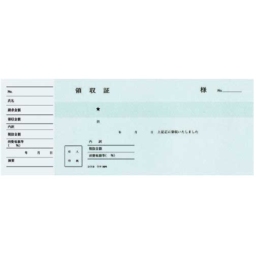領収証 小切手判ヨコ型 100枚 二色刷×10冊