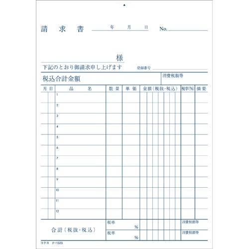 請求書 B6タテ 100枚 テ−1023×10