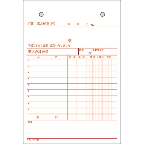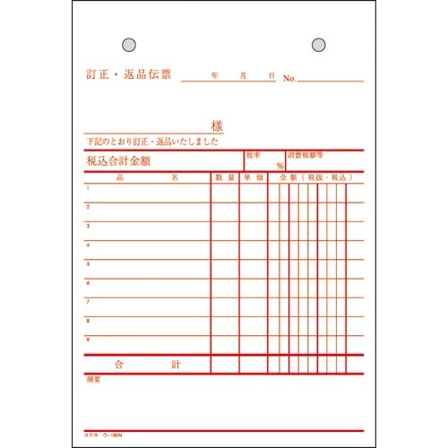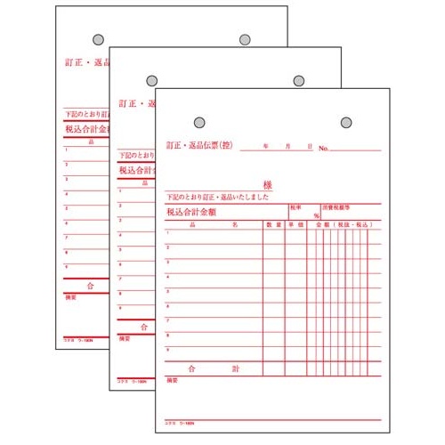 3枚訂正返品伝票 B6タテ バックカーボン 5冊