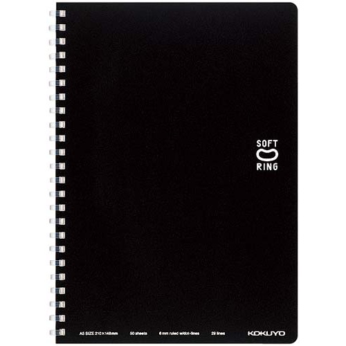 ソフトリングノート A5ドットB罫50枚 黒×5