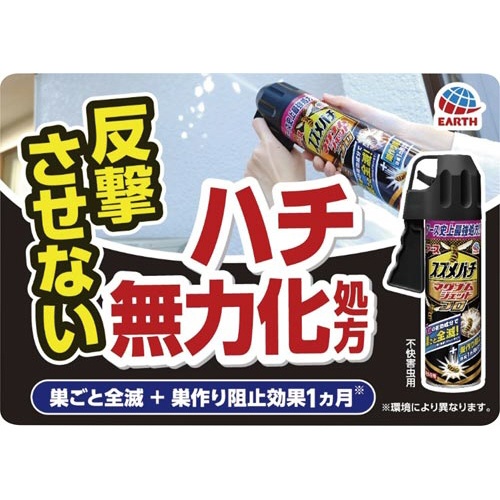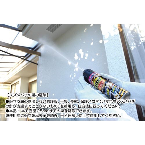 注意事項 | ※駆除の際には、必ず防護服を着用。日没後に行う。処理前に振動を与えない。 ※25センチメートル以上の巣の駆除は、大変危険なので、必ず専門の防除業者に相談。 ※ご使用にあたっては必ず使用方法を厳守して下さい。 ※メーカーの都合によりパッケージが予告なく変更される場合があります。 ※1セット単位でお申し込みください。 以下の点にご注意ください
