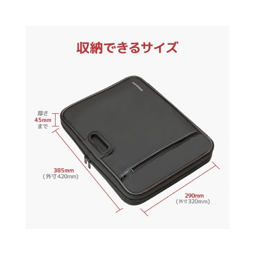 注意事項 | ※生地が伸縮しますので、PC収納部内寸の厚みが外形寸法の厚みより大きくなっています。 ※特殊な機器や収納ケースを付けた状態において収納できない場合があります。 ※お買い上げになる前にお使いの機器のサイズと当製品の収納寸法をご確認下さい。 ※【返品に関するご注意】開封後はお客様のご都合による返品はお受けできません。 以下の点にご注意ください