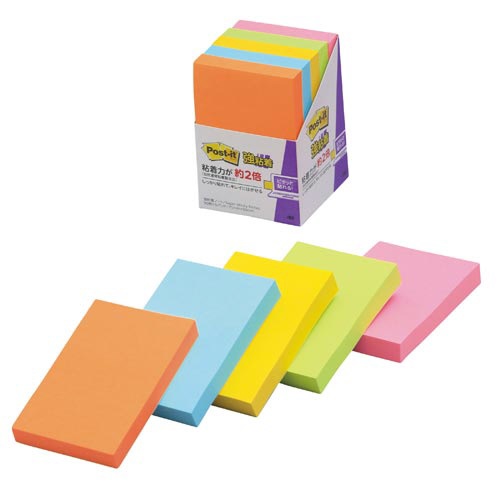 ポストイット 強粘着 75×50 ネオン混色 5冊