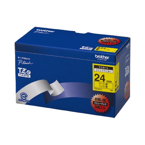 ピータッチ ラミネート黄色テープ24mm黒文字5個