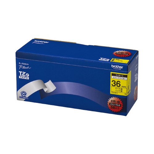 ピータッチ ラミネート黄色テープ36mm黒文字5個