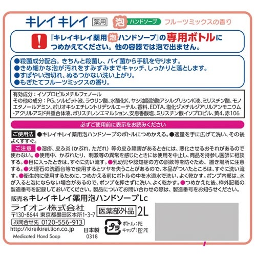 キレイキレイ薬用泡ハンドソープフルーツM業務用2L