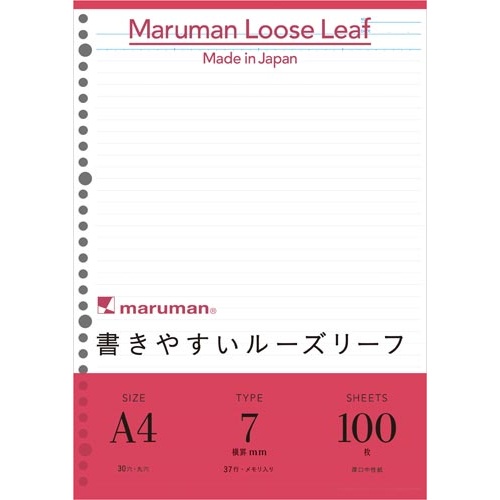 書きやすいルーズリーフA4 A罫メモリ入 100枚